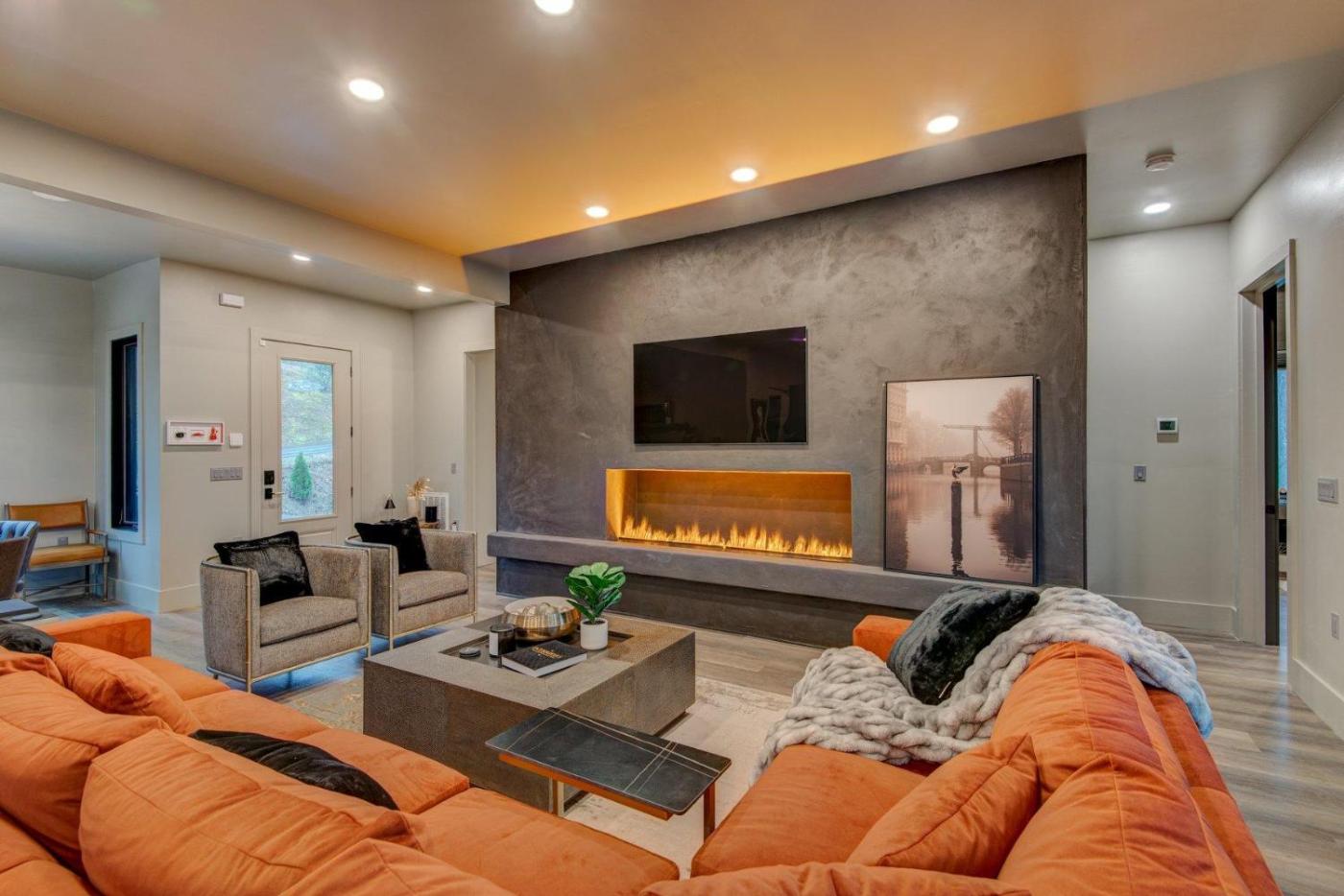 Four-Bedroom Holiday Home. The fireplace is a top feature of this holiday home. The air-conditioned holiday home has 4 bedrooms and 3 bathrooms with a bath and a shower. Guests will find a stovetop, a refrigerator, a dishwasher and an oven in the fully equipped kitchen. The holiday home also includes a barbecue. The holiday home features a washing machine, a dining area, tumble dryer, a TV with satellite channels, as well as mountain views. The unit has 5 beds.
