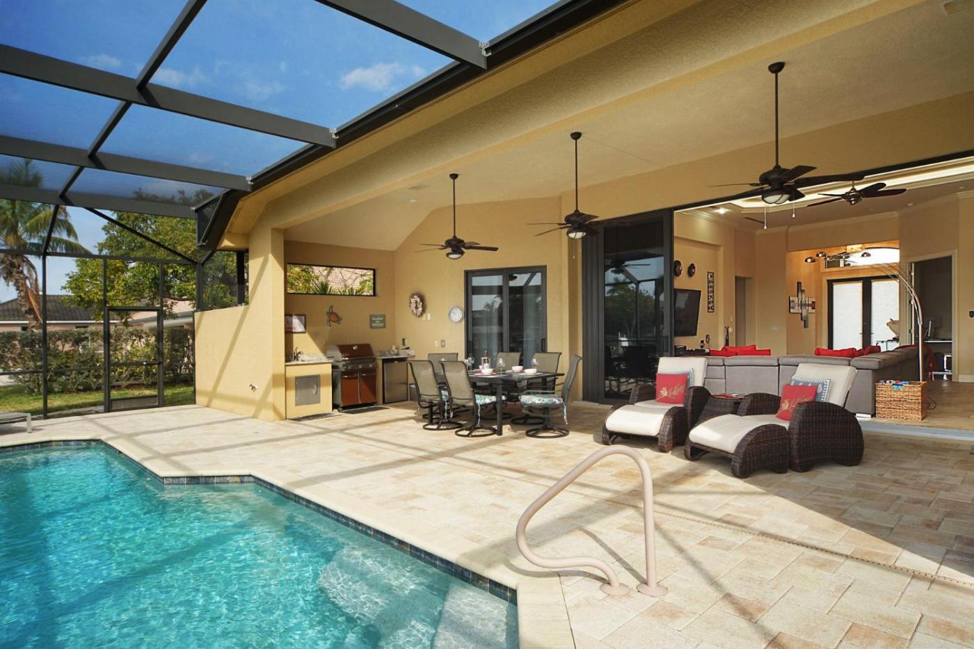 Boasting air-conditioned accommodation with a private pool, pool view and a patio, Sunshine Pearl Residence is located in Cape Coral. The property features river and garden views, and is 47 km from Fishermens Village. There is a sun terrace and guests can make use of free WiFi, free private parking and an electric vehicle charging station.