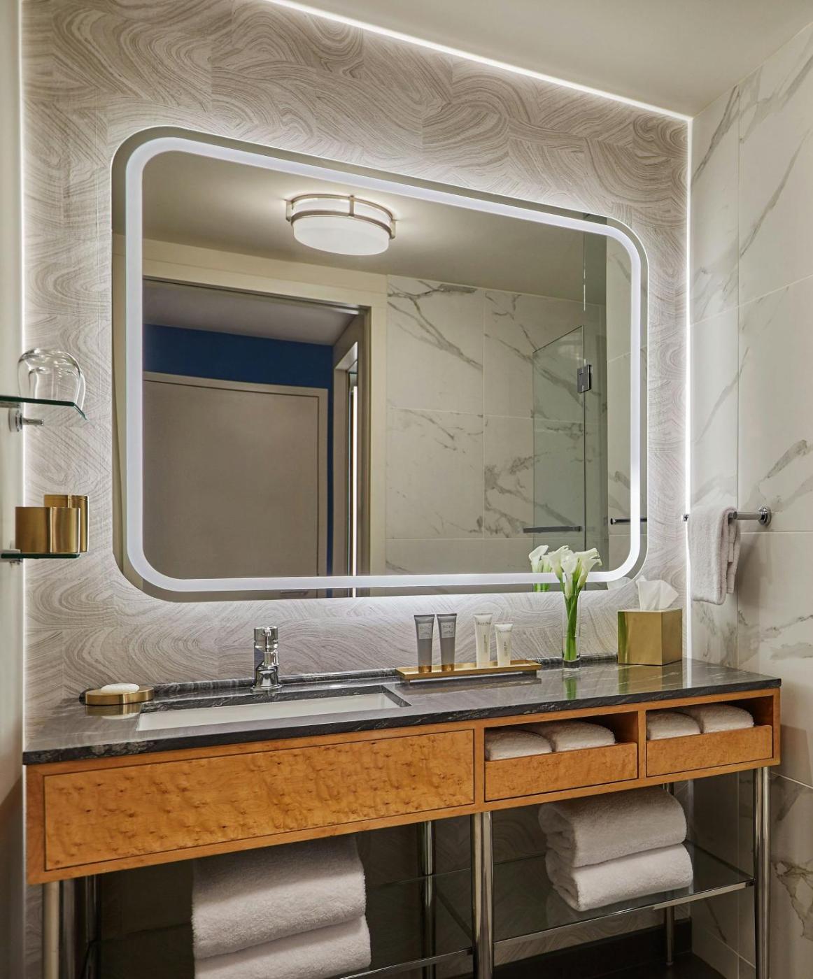 Junior Suite. This suite offers a large bathroom with a luxurious rainfall shower head, a make-up mirror and upscale bath products. ;