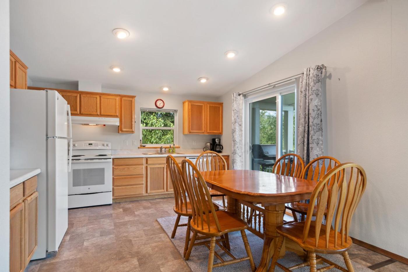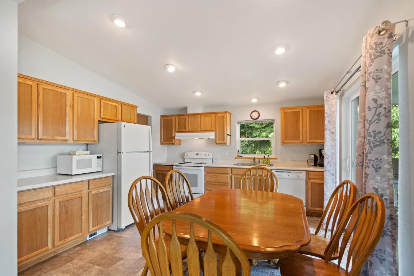 Three-Bedroom House. Featuring a private entrance, this air-conditioned holiday home consists of 1 living room, 3 separate bedrooms and 2 bathrooms with a walk-in shower and a bath. Guests will find a stovetop, a refrigerator, a dishwasher and kitchenware in the well-equipped kitchen. The holiday home also offers a barbecue. The spacious holiday home provides a washing machine, a tea and coffee maker, a seating area, a flat-screen TV with streaming services, as well as lake views. The unit offers 5 beds.
