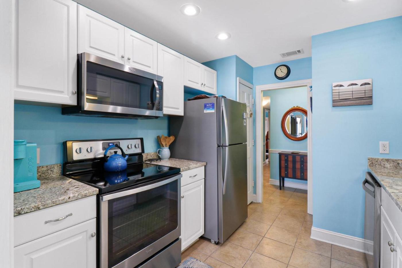 Three-Bedroom Villa. Featuring a private entrance, this air-conditioned villa comprises a kitchen, 3 bedrooms and 2 bathrooms with a shower and a hairdryer. Meals can be prepared in the kitchen, which comes with a stovetop, a refrigerator, a dishwasher and kitchenware. The villa provides a flat-screen TV with cable channels, a tea and coffee maker, a seating area, a dining area as well as sea views. The unit offers 3 beds.