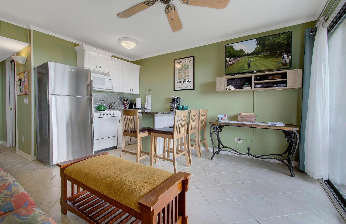One-Bedroom Apartment. This apartment features a pool with a view. Boasting a private entrance, this air-conditioned apartment features 1 living room, 1 separate bedroom and 1 bathroom with a bath and a shower. Guests will find a stovetop, a refrigerator, a dishwasher and kitchenware in the well-fitted kitchen. The apartment also comes with a barbecue. Featuring a terrace with sea views, this apartment also features soundproof walls and a flat-screen TV with cable channels. The unit has 3 beds.