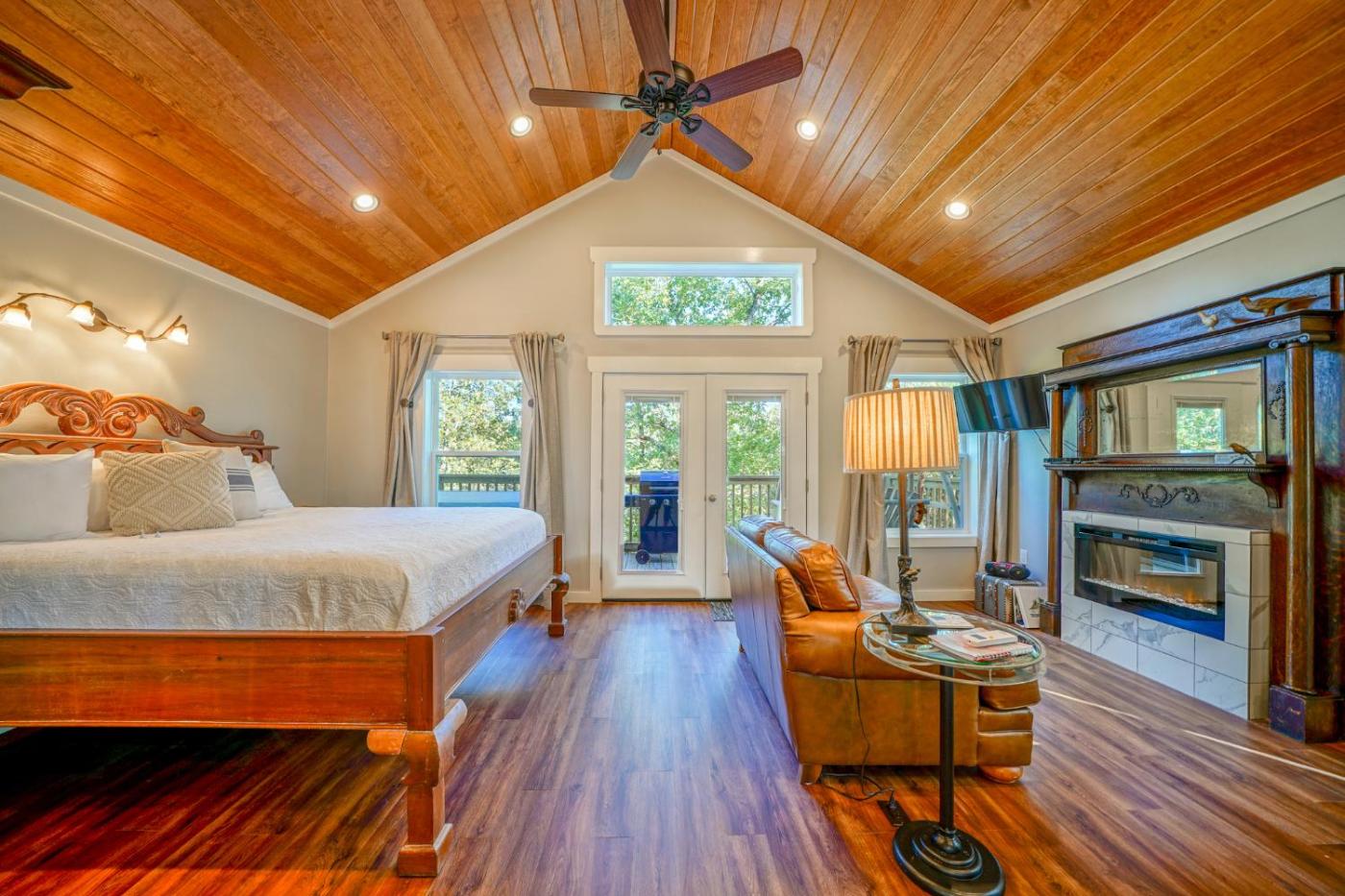Deluxe King Room. Guests will have a special experience as this double room offers a hot tub and a fireplace. Guests will find a stovetop, a refrigerator, kitchenware and a microwave in the well-equipped kitchen. The double room also comes with a barbecue. The spacious double room features air conditioning, a private entrance, a balcony with mountain views as well as a private bathroom boasting a shower. The unit has 2 beds. ;