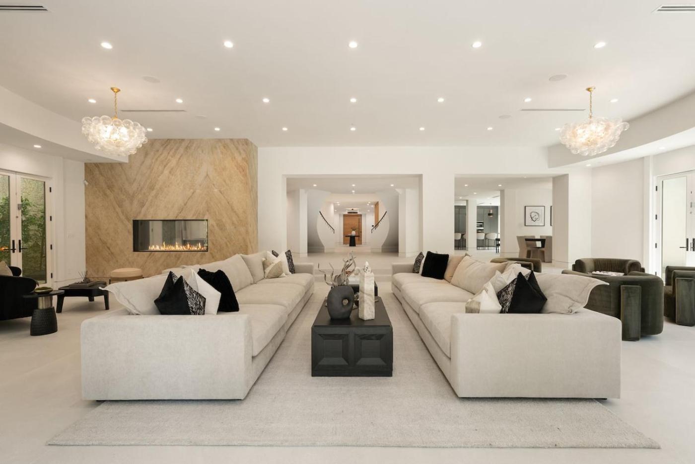 The spacious holiday home with a balcony and garden views has 7 bedrooms, 3 living rooms, a flat-screen TV, an equipped kitchen with a dishwasher and an oven, and 9 bathrooms with a hot tub. The accommodation offers a fireplace.