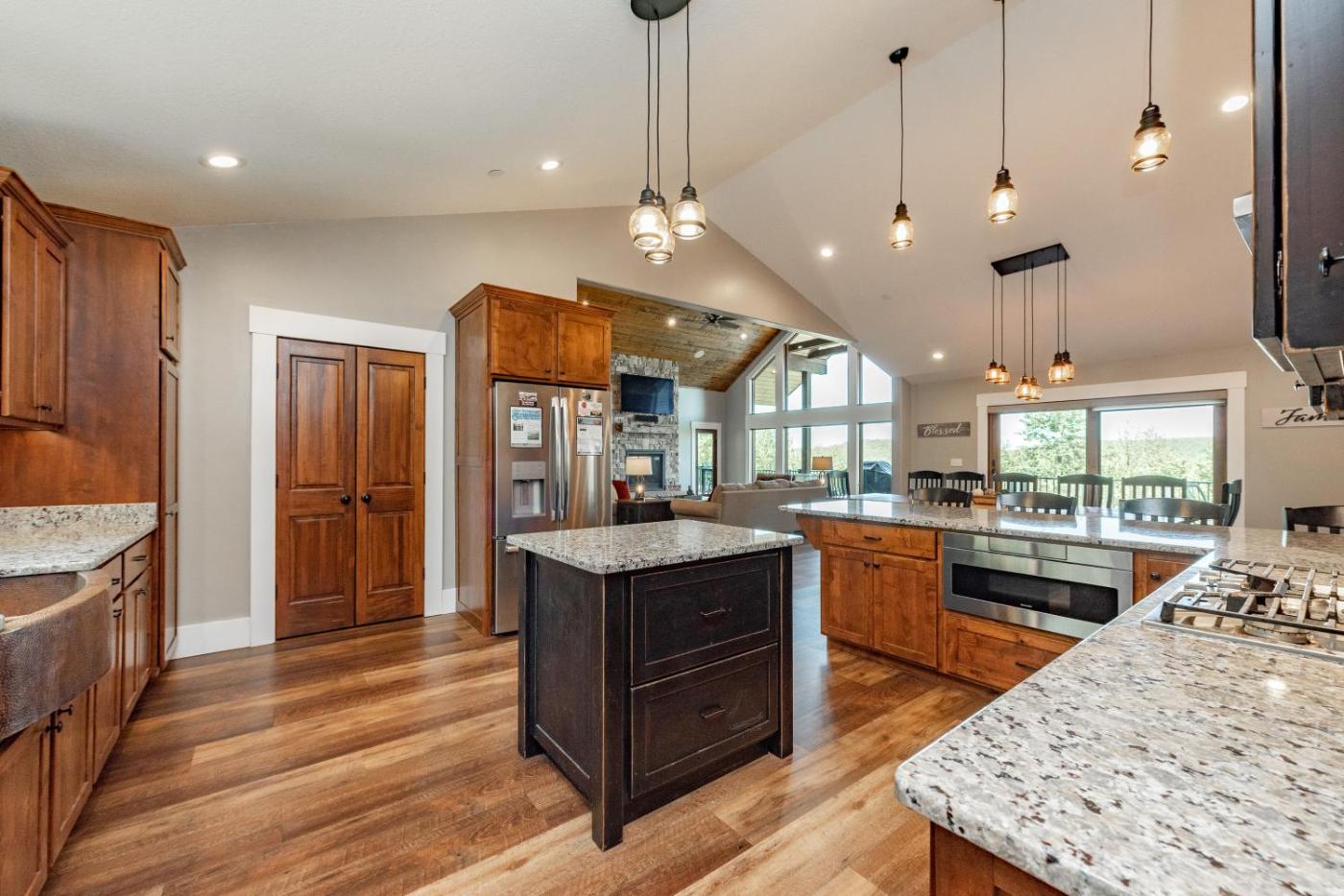 Five-Bedroom House. This holiday homes standout feature is the fireplace. This spacious holiday home includes 1 living room, 5 separate bedrooms and 6 bathrooms with a bath. Guests will find a stovetop, a refrigerator, a dishwasher and an oven in the kitchen. The holiday home also features a barbecue. This holiday home is air-conditioned and has a tea and coffee maker, tumble dryer and mountain views. The unit has 5 beds.