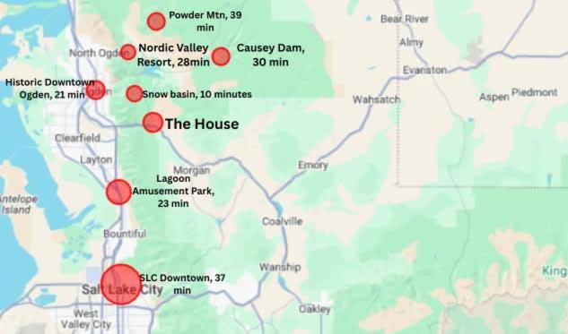 Ogden-Hinckley Airport is 24 km from the property.