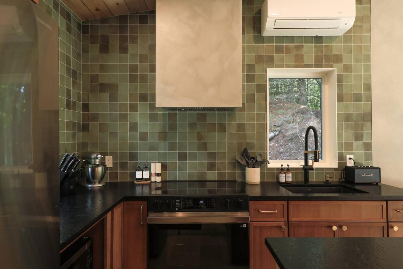 One-Bedroom Apartment. This apartments standout features are the hot tub and fireplace. Meals can be prepared in the kitchen, which comes with a stovetop, a refrigerator, an oven and a microwave. The air-conditioned apartment provides a flat-screen TV with streaming services, a washing machine, a private entrance, a tea and coffee maker as well as river views. The unit offers 2 beds.
