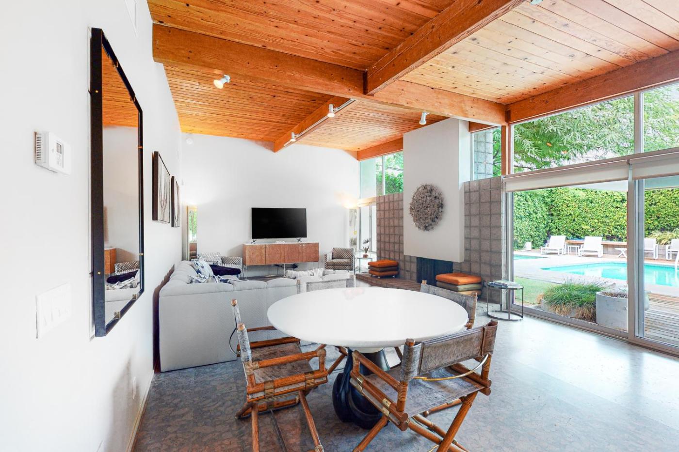 Elegant midcentury Alexander butterfly home w pool gas grill