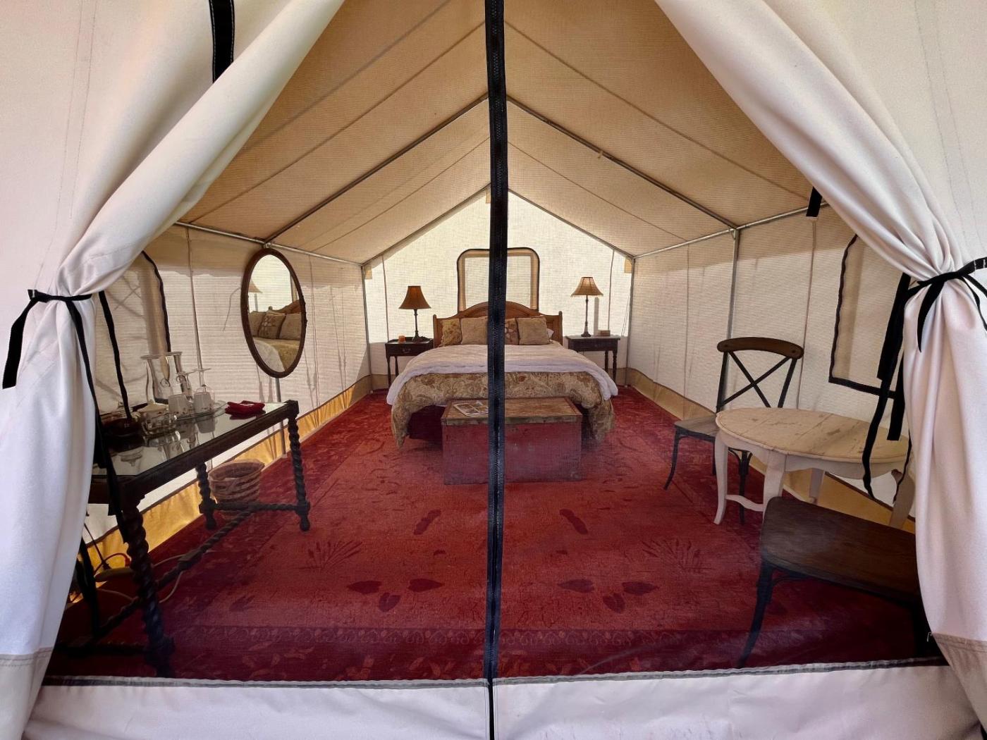 The luxury tent has a picnic areayou can spend a day out in the open.