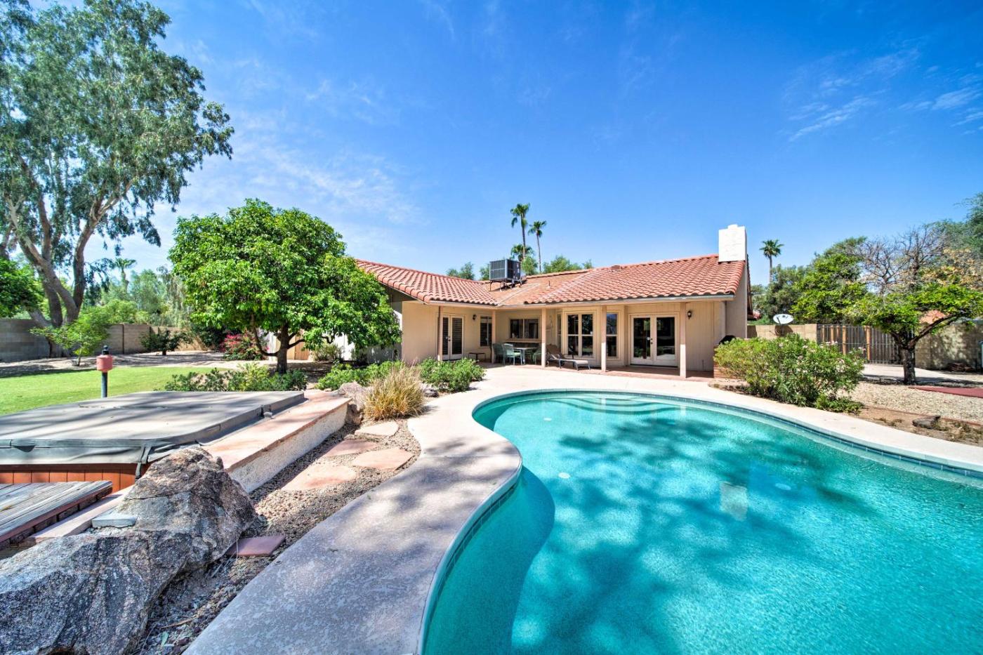 Boasting air-conditioned accommodation with a patio, Scottsdale Oasis with Fruit Trees, Sport Court and Spa is situated in Scottsdale. The property is30 km from Phoenix Convention Center, 30 km from Copper Square and 8.9 km from OdySea Aquarium. Featuring free WiFi throughout the property, the non-smoking holiday home features a hot tub.