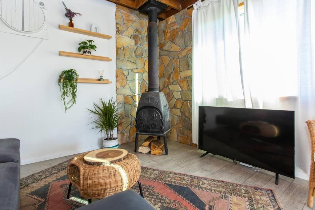 One-Bedroom House. The fireplace is the standout feature of this holiday home. Boasting a private entrance, this air-conditioned holiday home features 1 living room, 1 separate bedroom and 1 bathroom with a shower and a hairdryer. Meals can be prepared in the kitchen, which features a stovetop, a refrigerator, an oven and a microwave. The holiday home has tiled floors, a seating area with a flat-screen TV, a tea and coffee maker, a dining area as well as mountain views. The unit has 4 beds.